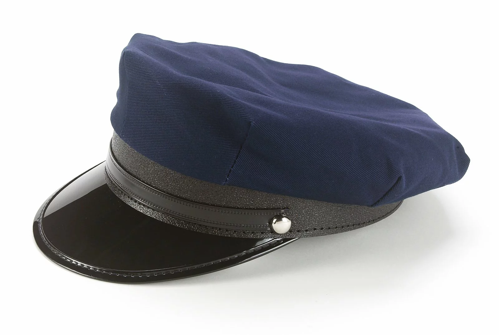 Top off your child’s police costume with this navy blue hat. Features a shiny black brim.